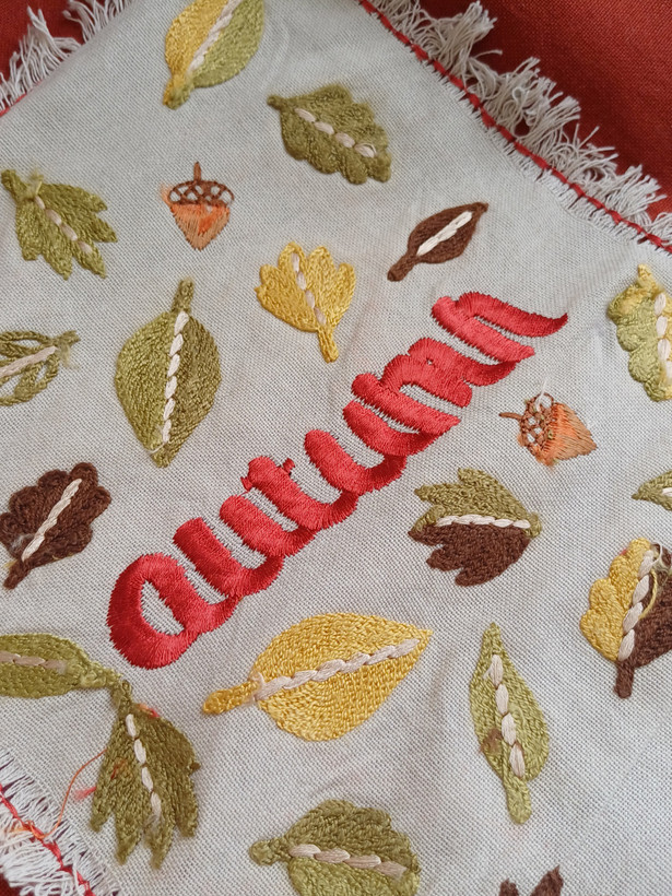 دستمال گلدوزی پاییزی